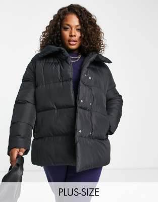 Threadbare Plus Topaz double breasted puffer jacket with shawl neck in black