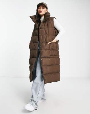 Threadbare Reflex oversized longline padded vest with pockets in chocolate brown
