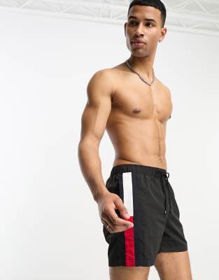 Tommy Hilfiger the side flag medium drawstring swim shorts in black