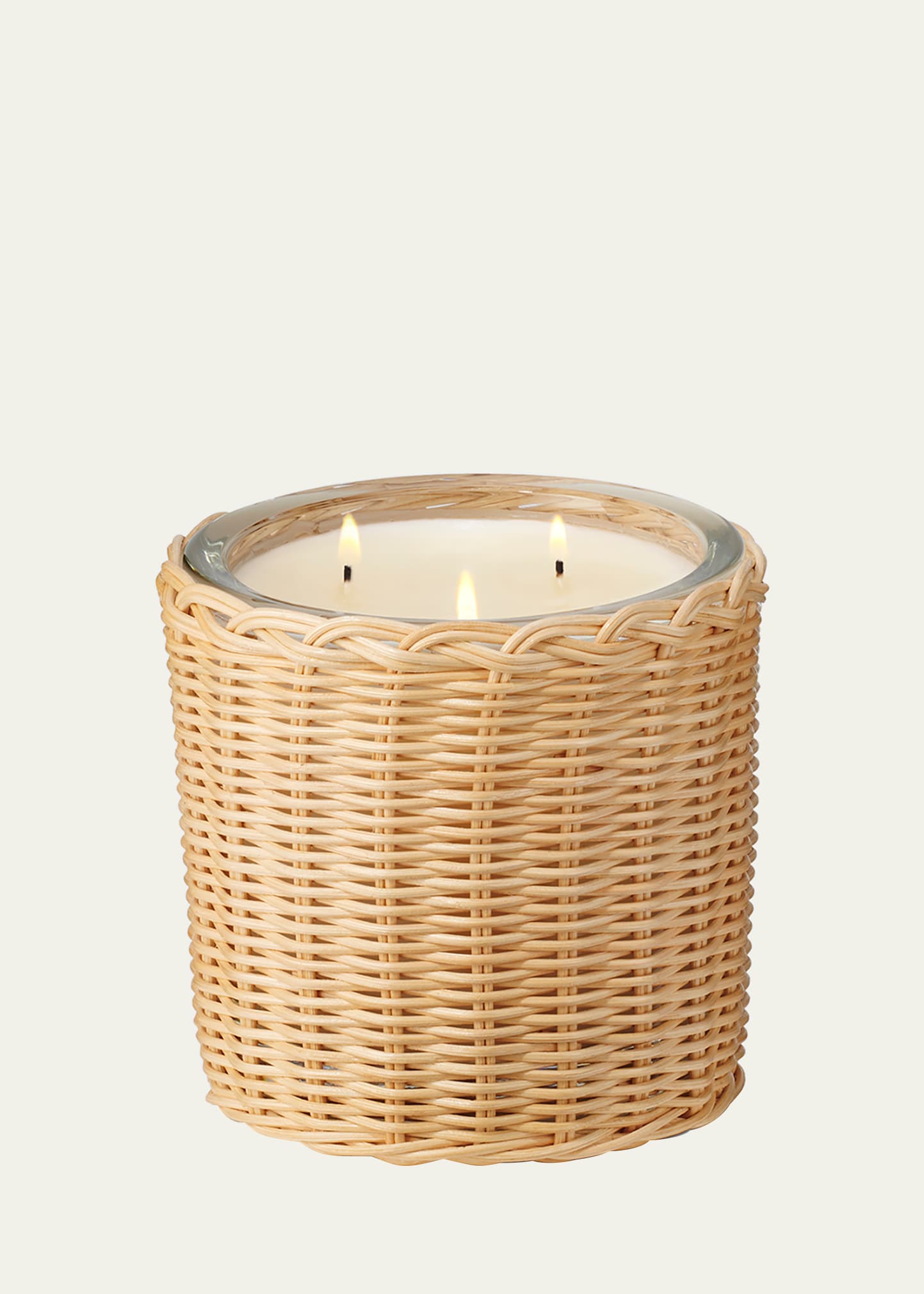 Handcrafted triple-wick candle. Scent: orange blossom. Wicker/glass jar. Approx. 5.2"Dia. x 5.1"T. For indoor use only. Burn time, 60 hrs. Made in Italy.