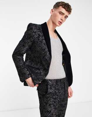 Twisted Tailor barbee smoking suit jacket in black jacquard with floral embroidery