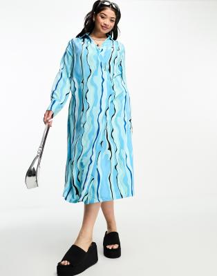 Dresses by Urban Threads Curve Best dressed: secured Abstract design Spread collar Wrap-style front Partial button placket Regular fit