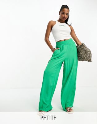 Vero Moda Petite shirred waist wide leg pants in bright green