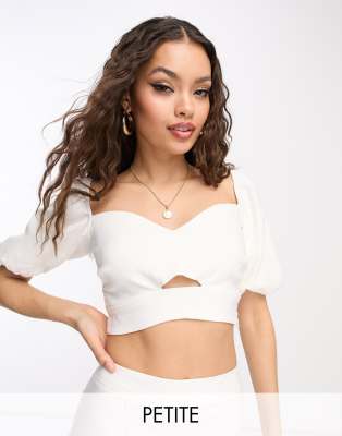 Tops by Vesper Petite Part of a co-ord set Pants sold separately Sweetheart neck Cut-out panel Cropped length Regular fit