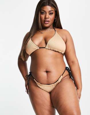 We Are We Wear Plus melissa tie side reversible bikini brief in black and caramel