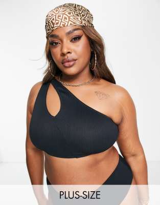 We Are We Wear Plus one shoulder reversible bikini top in black and caramel