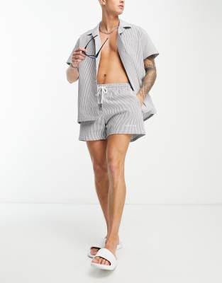 We Are We Wear William short sleeve shirt in cream stripe print - part of a set-White