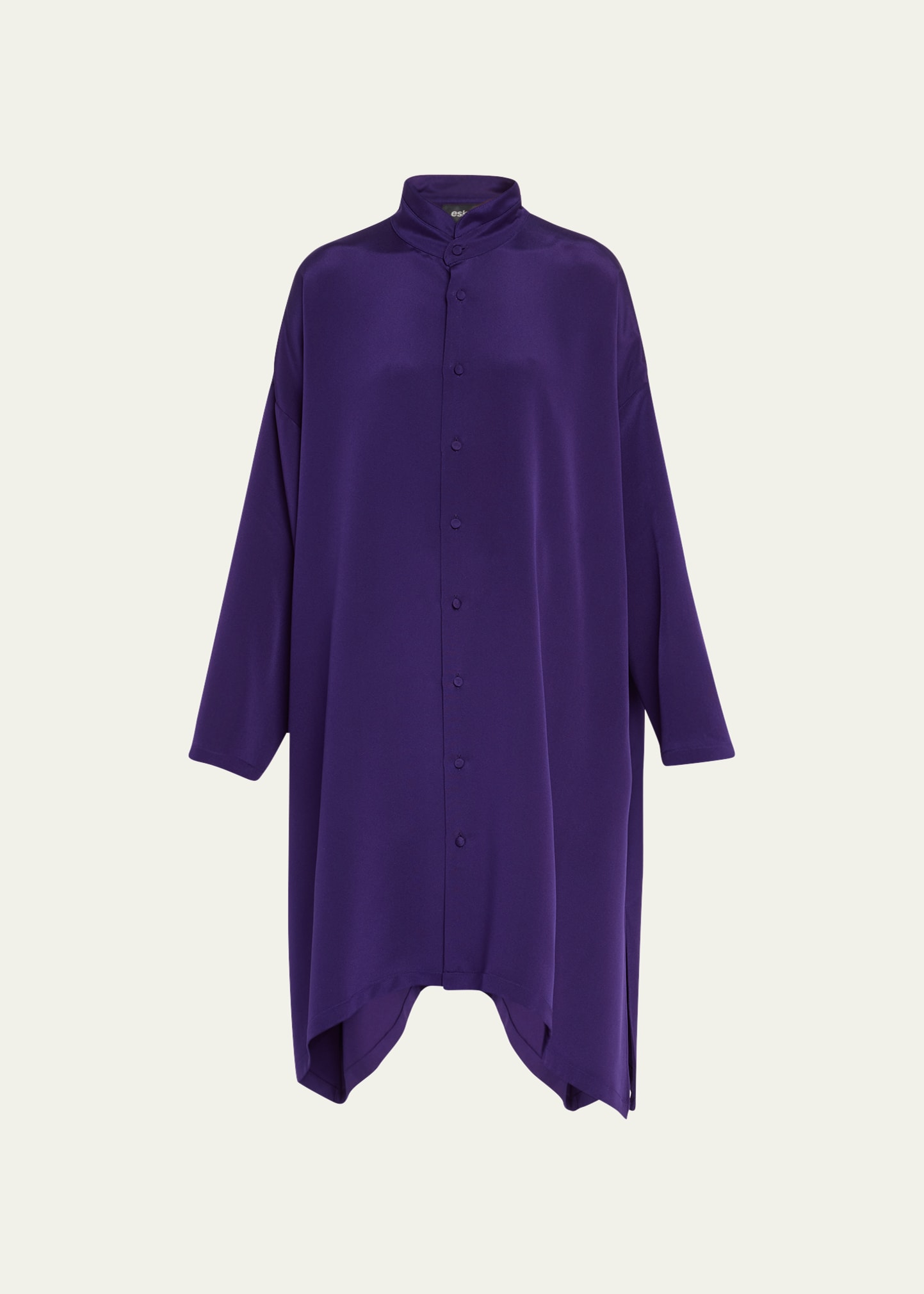 Eskandar wide shirt Double-stand collar; button down Long sleeves; button cuffs Wide A-line silhouette Very long length Silk Made in Poland