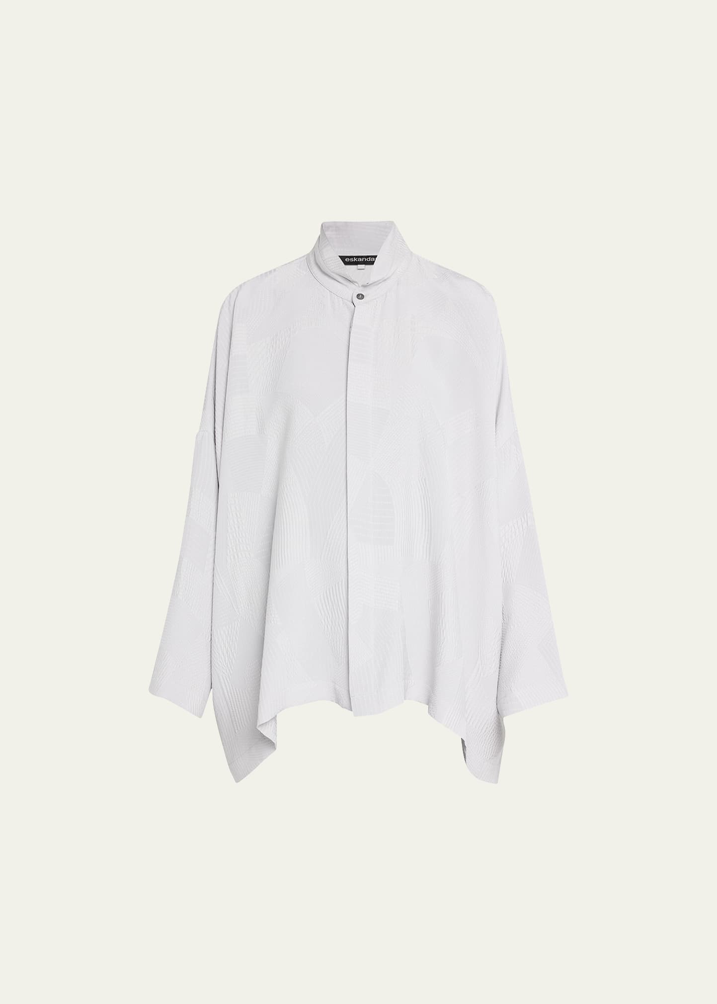 Wide Longer-Back Double Stand Collar Jacquard Shirt (Mid Plus Length)