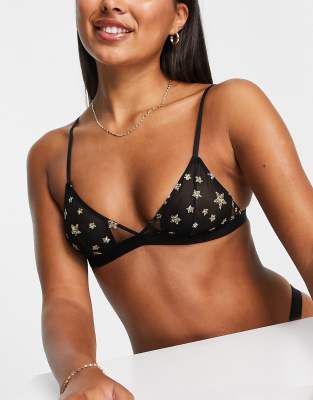 Lingerie & Sleepwear by Wild Lovers Anything but basic Metallic star design Triangle cups Elasticated underband for a secure fit Adjustable straps Hook-and-eye closure