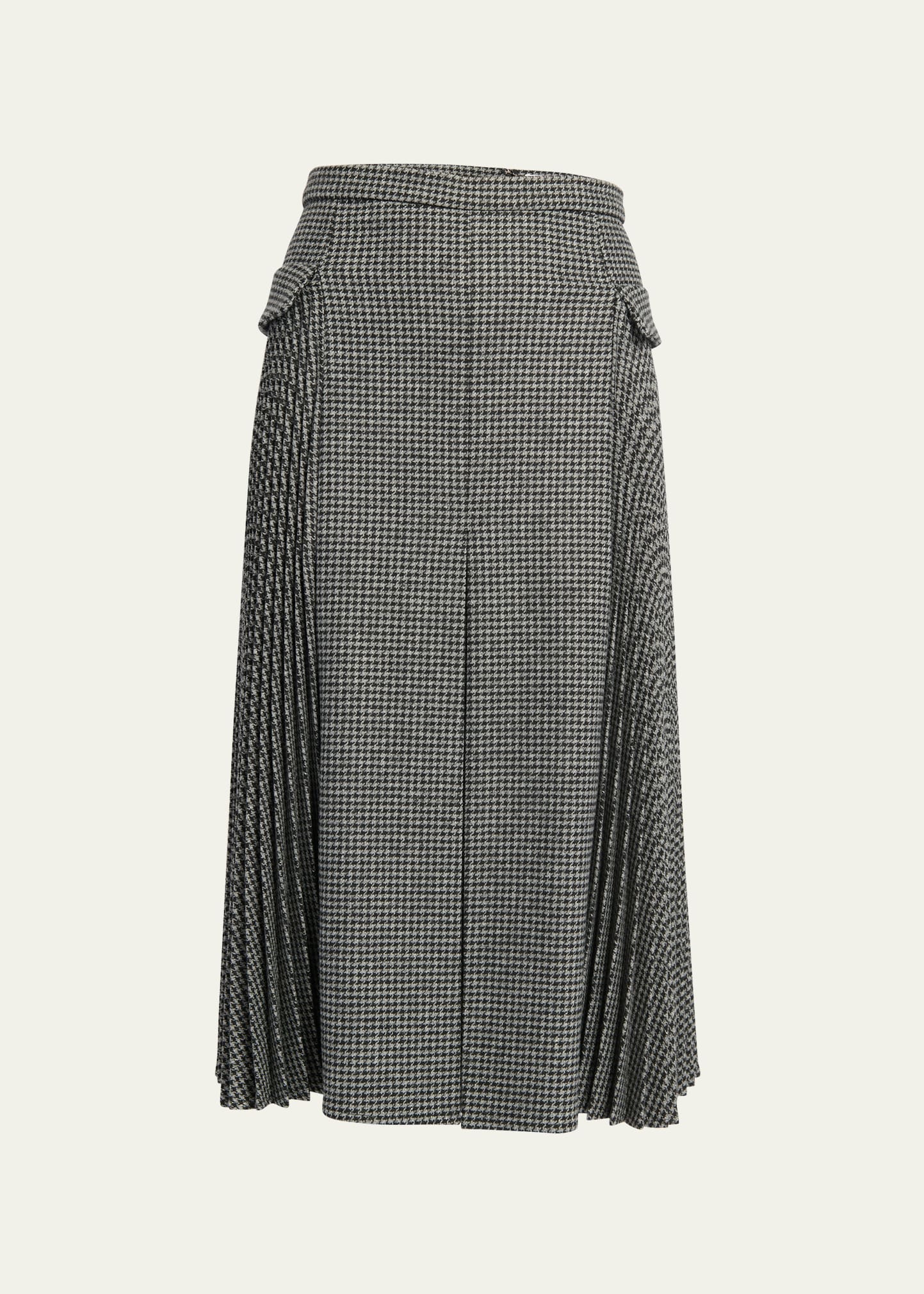 Erdem houndstooth wool midi skirt features pleated panels on each side Mid-rise Concealed back zip Side flap pockets Hem falls below the knee A-line silhouette Wool/polyester/acrylic Lining: Silk Dry clean, professional cleaning recommended Made in Romania