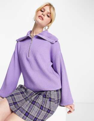 Sweaters & Cardigans by Y.A.S Add-to-bag material High neck Quarter zip fastening Volume sleeves Relaxed fit