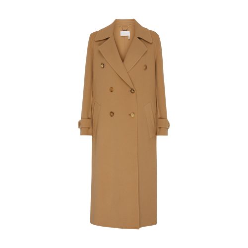 Crystal Arrow Double-Breasted Wool Crepe Long Tailored Coat