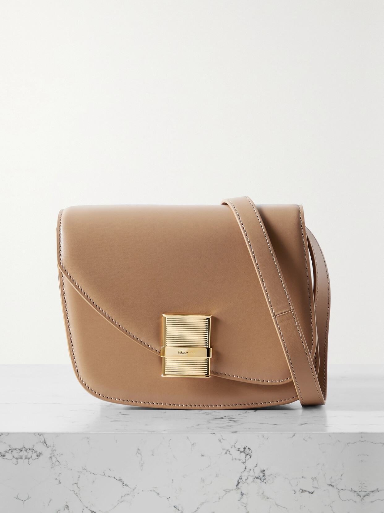 Ferragamo - Fiamma Embellished Leather Shoulder Bag - Neutrals