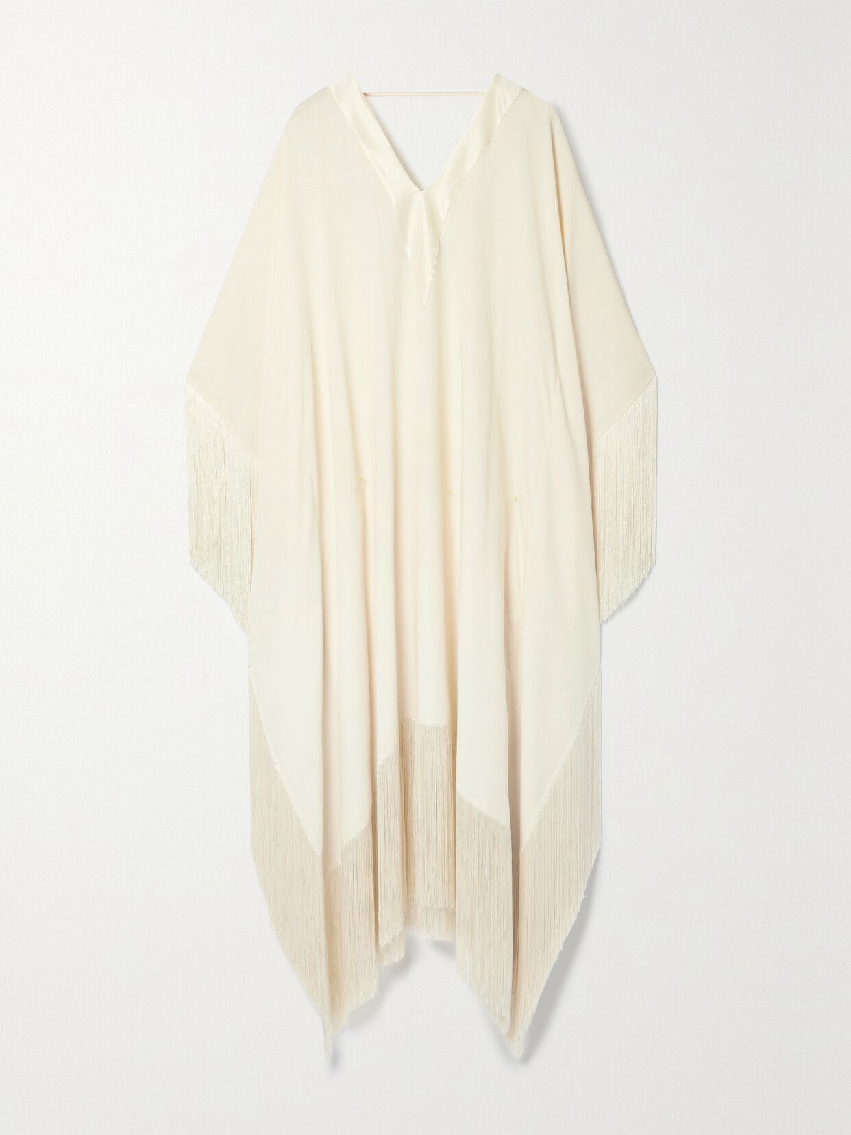 Taller Marmo - + Net Sustain Very Ross Fringed Satin-trimmed Crepe Kaftan - Ivory